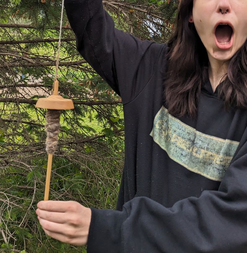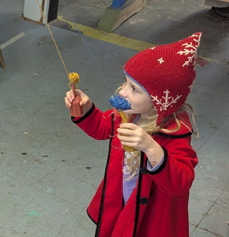 Wool Spinning is the process by which a sheep's fleece begins to become a sweater! In 2021, I received the Teaching Tools Grant from the American Swedish Institute in order to purchase a spinning wheel, drop spindles, and wool carders. Since then, I have used those tools to teach a variety of fiber-related workshops to both adults and children.