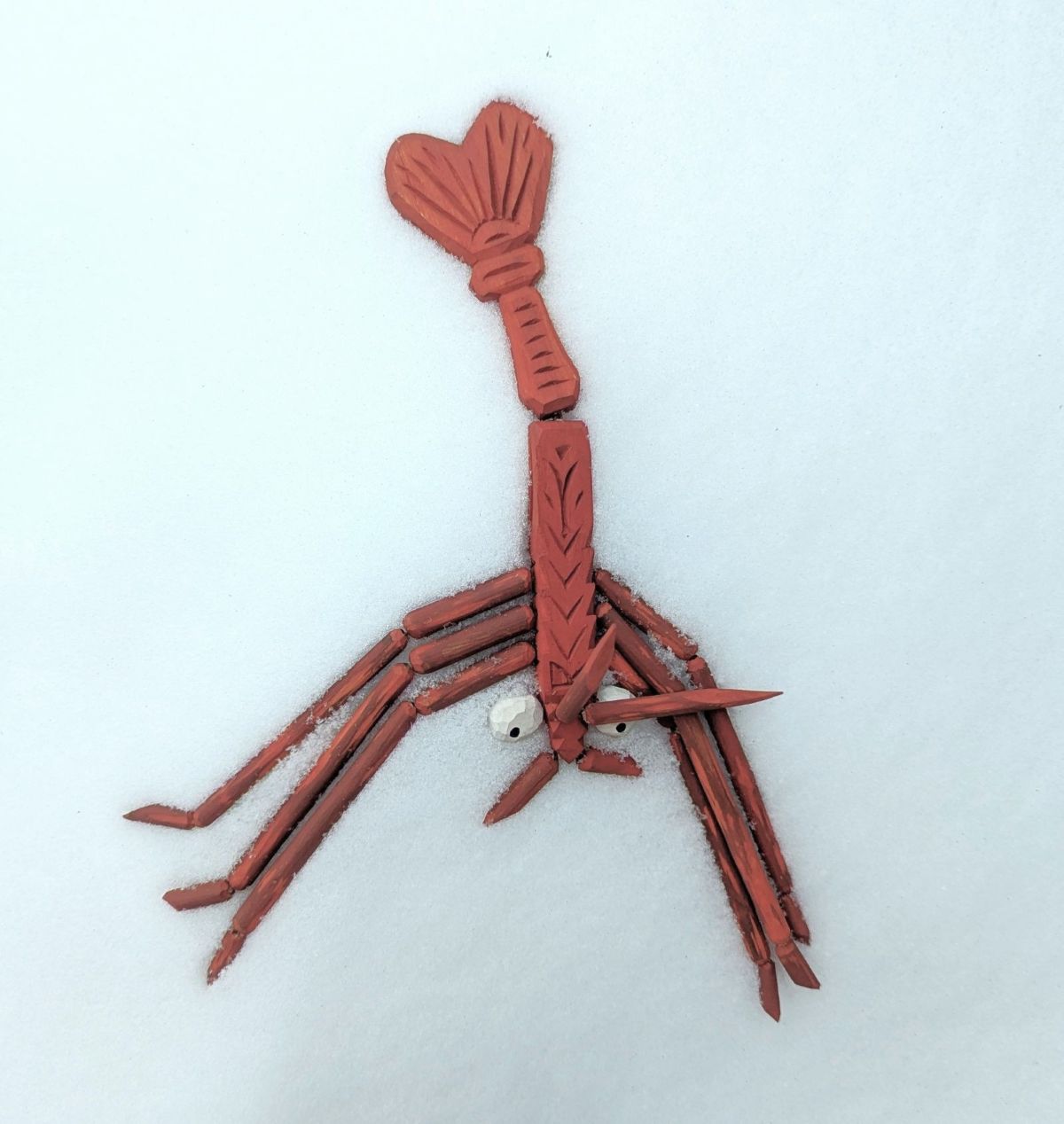 I've been terrified of shrimps, lobsters, crabs, and all crustaceans since I was a wee boy. I decided to make this freaky little shrimp so as to participate in some crafty exposure therapy.